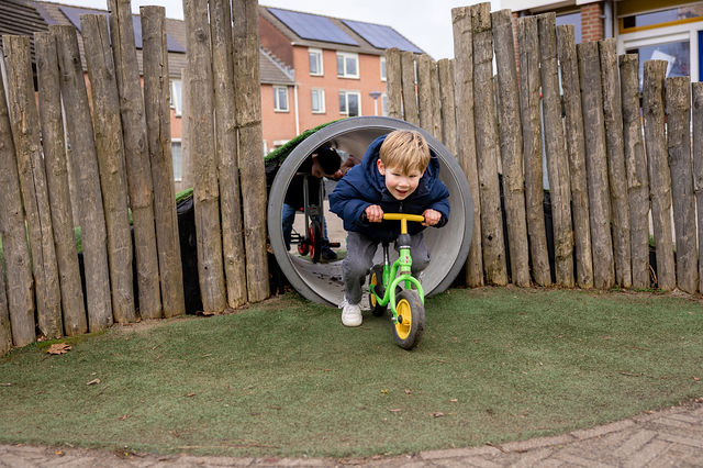 Buiten spelen vinden wij essentieel en plannen dit dagelijks in de ochtend, tussen 11:15 en 12:00 uur. We gebruiken hiervoor het schoolplein, dat we delen met de kleuterklassen van de basisschool.